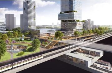 作為成都首批次場(chǎng)站綜合開(kāi)發(fā)的14個(gè)TOD示范項(xiàng)目之一,成都行政學(xué)院站TOD總投資超150億,項(xiàng)目位于成都東進(jìn)橋頭堡,以站點(diǎn)為核心,周邊半徑3公里范圍內(nèi)共規(guī)劃有6條軌道線。成都行政學(xué)院TOD是成都東西向干線2號(hào)線(已運(yùn)營(yíng))和成都第二條環(huán)線9號(hào)線(規(guī)劃)的換乘站點(diǎn)。根據(jù)《成都市軌道交通場(chǎng)站一體化城市設(shè)計(jì)導(dǎo)則》,行政學(xué)院站為組團(tuán)級(jí)站點(diǎn)。項(xiàng)目由大型商業(yè)綜合體、五星級(jí)酒店、超甲辦公、創(chuàng)意街區(qū)、住宅、學(xué)校等業(yè)態(tài)構(gòu)成,以“東進(jìn)門戶、創(chuàng)驛綠谷”為主題打造為以公共交通結(jié)合慢行體系為主要出行方式的“活力中心”。結(jié)合功能板塊,形成“交通圈”“商業(yè)圈”“生活圈”相互支撐的城市格局。通過(guò)加強(qiáng)站點(diǎn)與產(chǎn)業(yè)功能區(qū)銜接,提升營(yíng)商環(huán)境、吸引高端要素聚集,打造創(chuàng)新開(kāi)敞空間;健康運(yùn)動(dòng)場(chǎng)景依托豐富的綠色資源,滿足多層次人群需要的體育運(yùn)動(dòng)場(chǎng)景,完善綠道體育消費(fèi)新場(chǎng)景;生活?yuàn)蕵?lè)場(chǎng)景提供多種業(yè)態(tài)布局,同時(shí)強(qiáng)調(diào)多元、互動(dòng)、公共性,提升街區(qū)的活力。