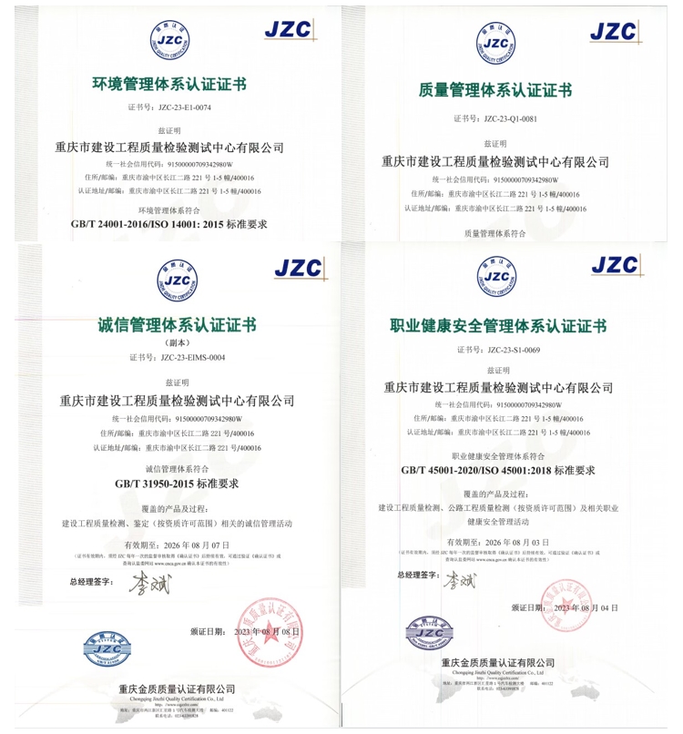 重慶市建設工程質量檢驗測試中心有限公司順利通過質量、環境、職業健康安全、誠信管理體系現場評審