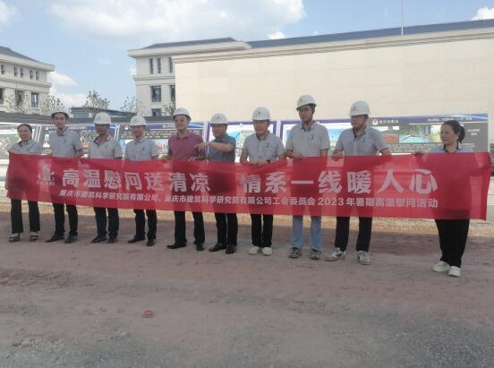 89日,重慶設計集團所屬子企業重慶市建筑科學研究院有限公司黨委委員、監事會主席王釗同志帶隊赴監理咨詢六公司承擔監理的重慶市公安局特勤局回興訓練基地精裝修、弱電智能化及設施設備安裝項目開展高溫慰問送清涼活動,向奮戰在一線的職工致以親切的問候,并送上防暑降溫物品。