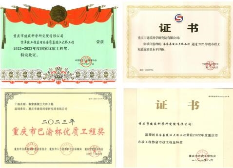 蔡家嘉陵江大橋修建過程中,項目部創新性監理工作,建立健全全壽命質量控制體系,采用無人機進行項目智慧管理,利用數據信息對施工現場進行統一調配;采用智慧工程——建設工程協同管理平臺,將工程項目全生命周期中的信息模型、數據信息、管理資料等集合顯示處理,實現全過程協同管理,顯著提高工作效率;率先實行了二維碼唯一標識見證取樣管理制度,實現每一組試件、每一份報告均可溯源。項目獲評國家優質工程獎、市政工程最高質量水平評價(原國家市政工程金獎)、重慶市市政工程金杯獎、三峽杯優質結構工程獎、巴渝杯優質結構工程獎、重慶市智慧工地示范項目。