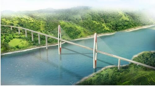蔡家嘉陵江大橋設計以“山水之歌、蔚藍未來”為主題,在近百個設計方案中采用僅設置一道中橫梁的簡約H型雙肢塔造型,主塔造型挺拔秀麗,并在橋塔中部設置蔚藍色系的“水紋”圖案的壁畫裝飾,減弱視覺上橋塔過高的效果,不僅表現出結構上的穩定連續及強勁力感,還將美的形態與內涵完美融入周邊山水的自然環境,與下游的軌道交通橋梁遙相輝映、各具特色,這也是國內已建成最高的無上橫梁 H型橋塔同時,對跨江大橋的橋型風格、橋頭、標示標牌、雕塑、色彩、護欄、路燈等景觀進行聯動打造,使之與城市山水環境整體協調,豐富現有跨江大橋景觀層次和色彩,提高跨江大橋夜景燈飾效果,讓大橋為重慶“最美橋都”增添靚麗一筆。