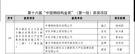4月24日,重慶設(shè)計集團所屬子企業(yè)重慶市建筑科學(xué)研究院有限公司監(jiān)理的兩江新區(qū)水土片區(qū)城鄉(xiāng)融合發(fā)展項目(二期)榮獲中國建筑鋼結(jié)構(gòu)行業(yè)工程質(zhì)量的最高榮譽獎——中國鋼結(jié)構(gòu)金獎。