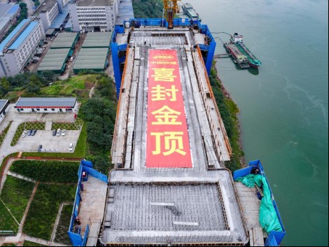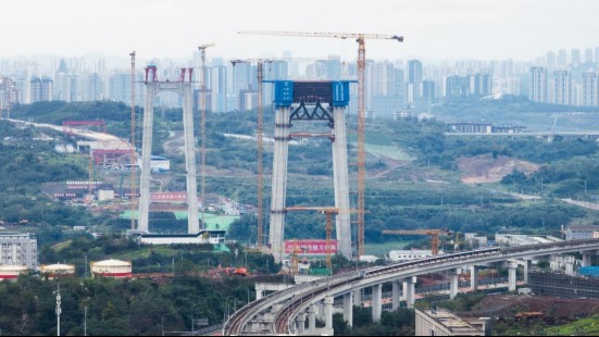 世界最大跨徑公軌兩用懸索橋——黃桷沱長江大橋主塔全部封頂