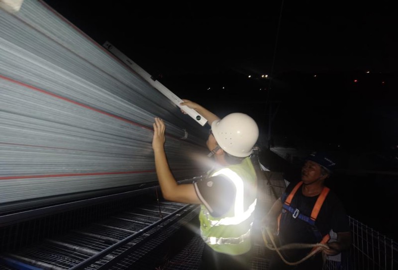 自2025年5月31日大橋基準索股牽引過江以來,建科人的身影無處不在。市建科院監理團隊風雨兼程、風雨無阻、風雨不懼,克服有風有雨、高溫酷暑的施工環境,在長江江面百米的高空貓道上,頭頂烈日來回穿行、揮汗如淚。