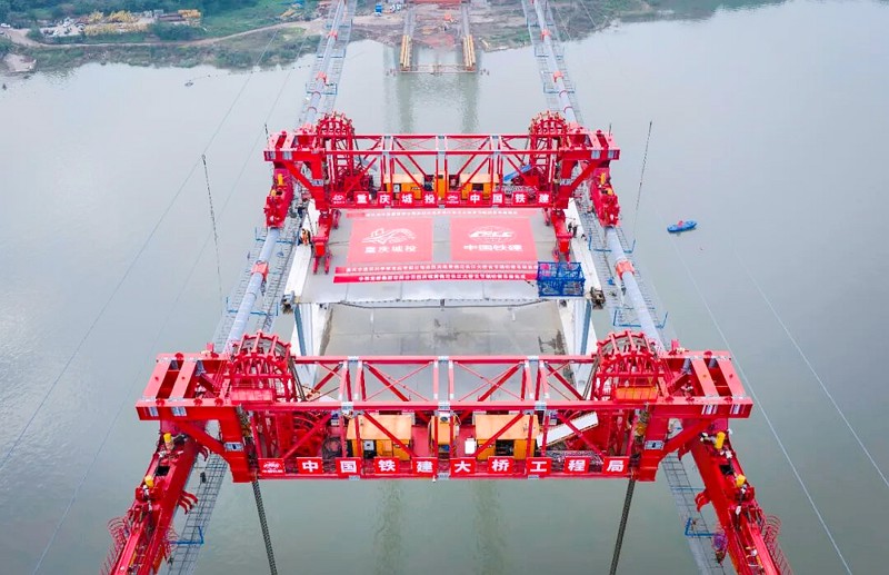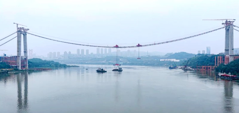 世界在建最大跨徑公軌兩用懸索橋黃桷沱長江大橋首節鋼桁架吊裝完成 重慶設計集團市建科院全程監理護航