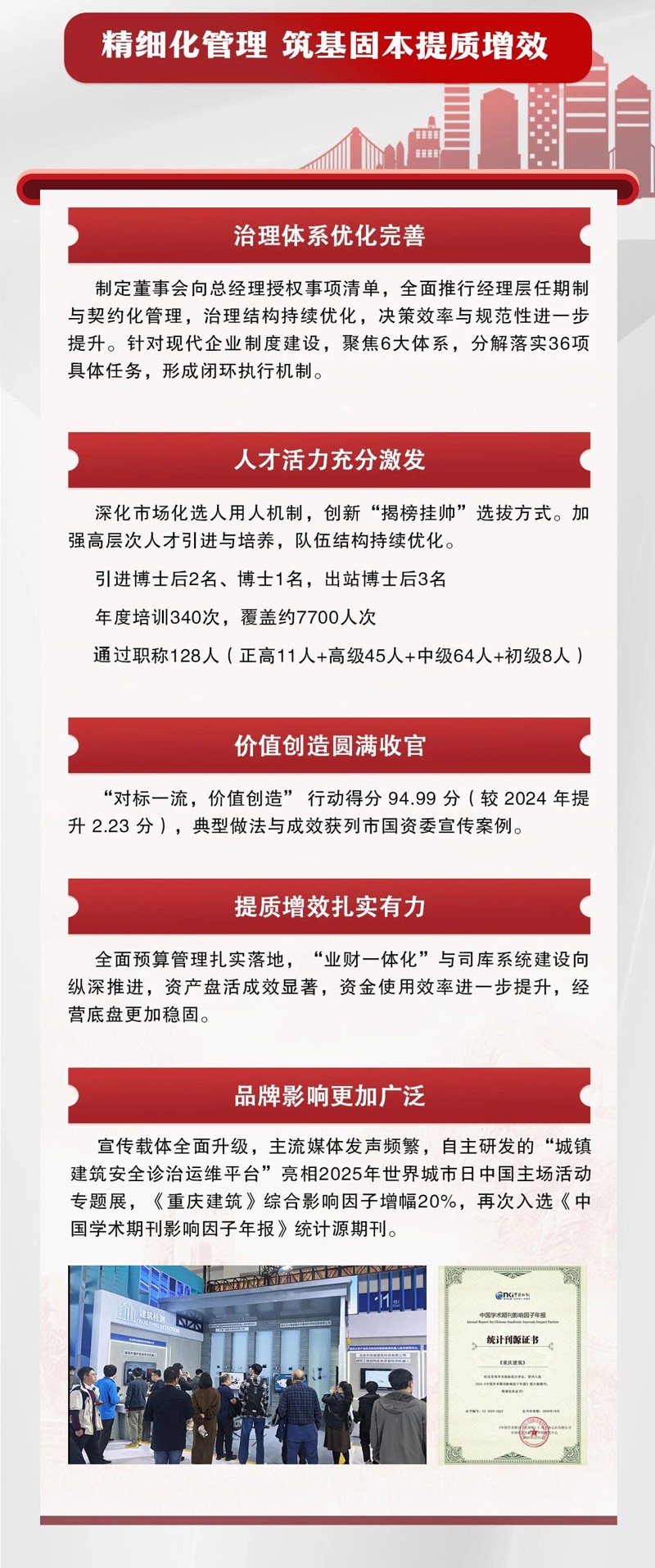 2025年,重慶設計集團市建科院內部融合持續深化,業務布局不斷完善,核心能力穩步增強,風險防線更加牢固,黨建與業務同頻共振,發展基礎堅實穩固。