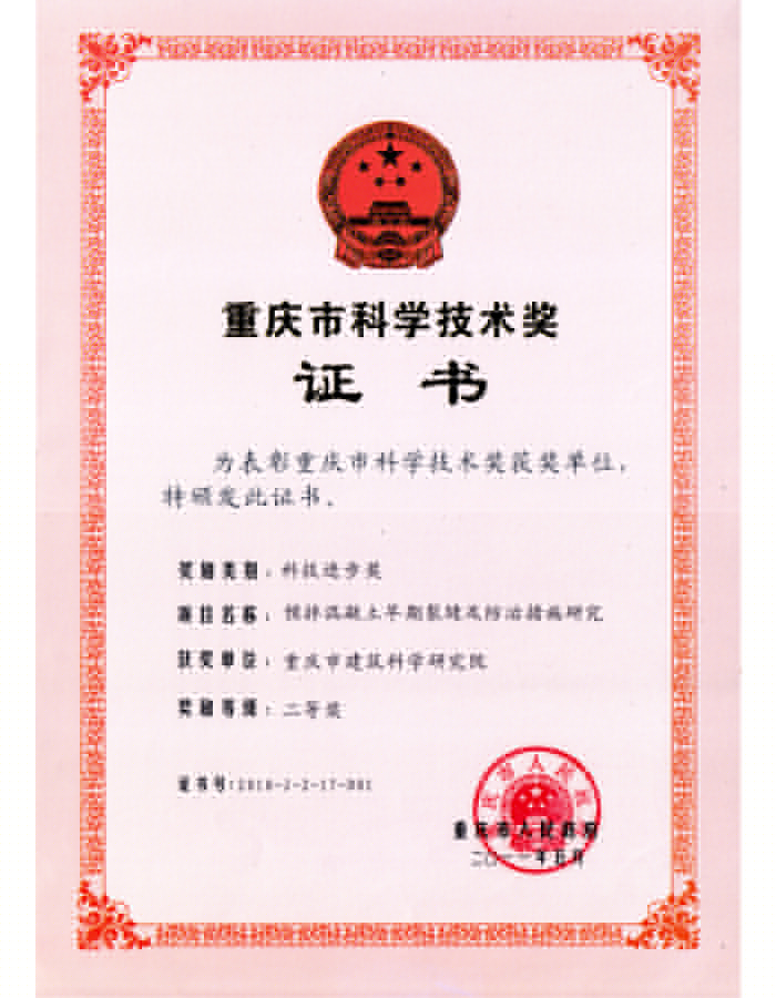 • 重慶市科技進(jìn)步二等獎(jiǎng)
